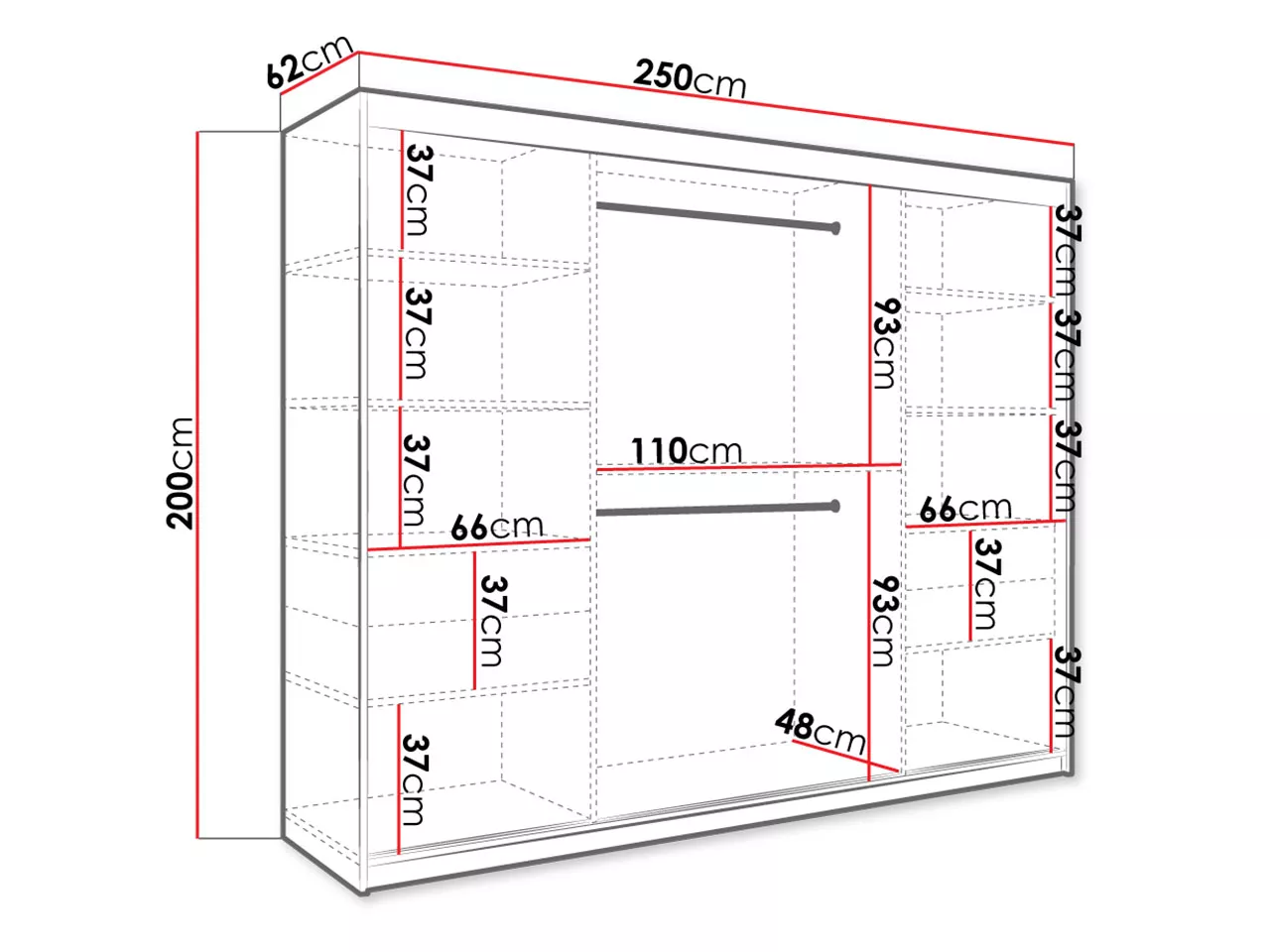 Vneste do své ložnice pořádek a styl díky moderní šatní skříni CARSON. Skříň je vybavena posuvnými dveřmi pro snadnější manipulaci, praktické zrcadlo opticky zvětší prostor. Díky hlubokým policím a 2 šatním tyčím snadno uspořádáte jak oblečení, tak sezónní doplňky.