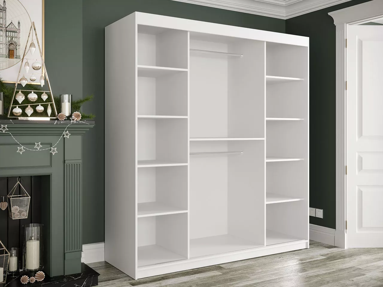 Hledáte funkční a stylovou šatní skříň? Model CARSON se 2 šatními tyčemi na zavěšení svrchního oblečení a praktickými hlubokými policemi splní vaše očekávání. Výška 200 cm umožňuje pohodlně ukládat i dlouhé šaty nebo kabáty, zatímco police poskytují prostor pro složené oblečení.