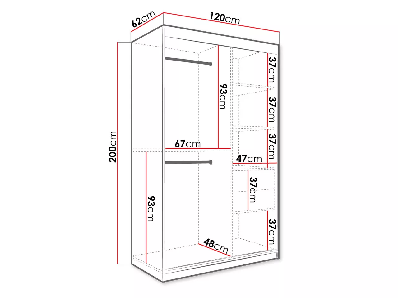Šatní skříň se zrcadlem CARSON spojuje praktičnost s moderním designem. Zrcadlové dveře opticky zvětšují prostor. Hluboké poličky a 2 šatní tyče umožňují snadné uspořádání šatníku a poskytují dostatek místa pro všechny vaše věci. Jedinečný design skříně podtrhují mramorový efekt a zlaté úchyty.