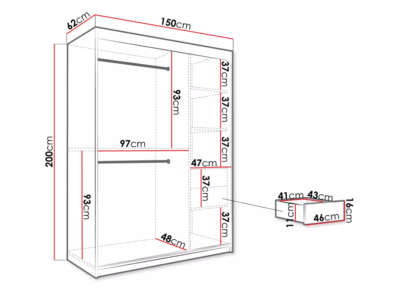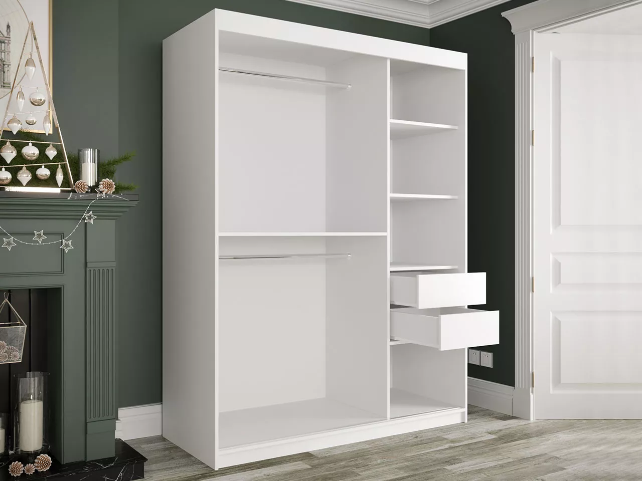 Vneste do své ložnice pořádek a styl díky moderní šatní skříni CARSON. Skříň je vybavena posuvnými dveřmi pro snadnější manipulaci, praktické zrcadlo opticky zvětší prostor. Díky hlubokým policím a 2 šatním tyčím snadno uspořádáte jak oblečení, tak sezónní doplňky. Šuplíky vám poskytnou místo pro drobnější předměty, což vám umožní využít prostor na maximum.