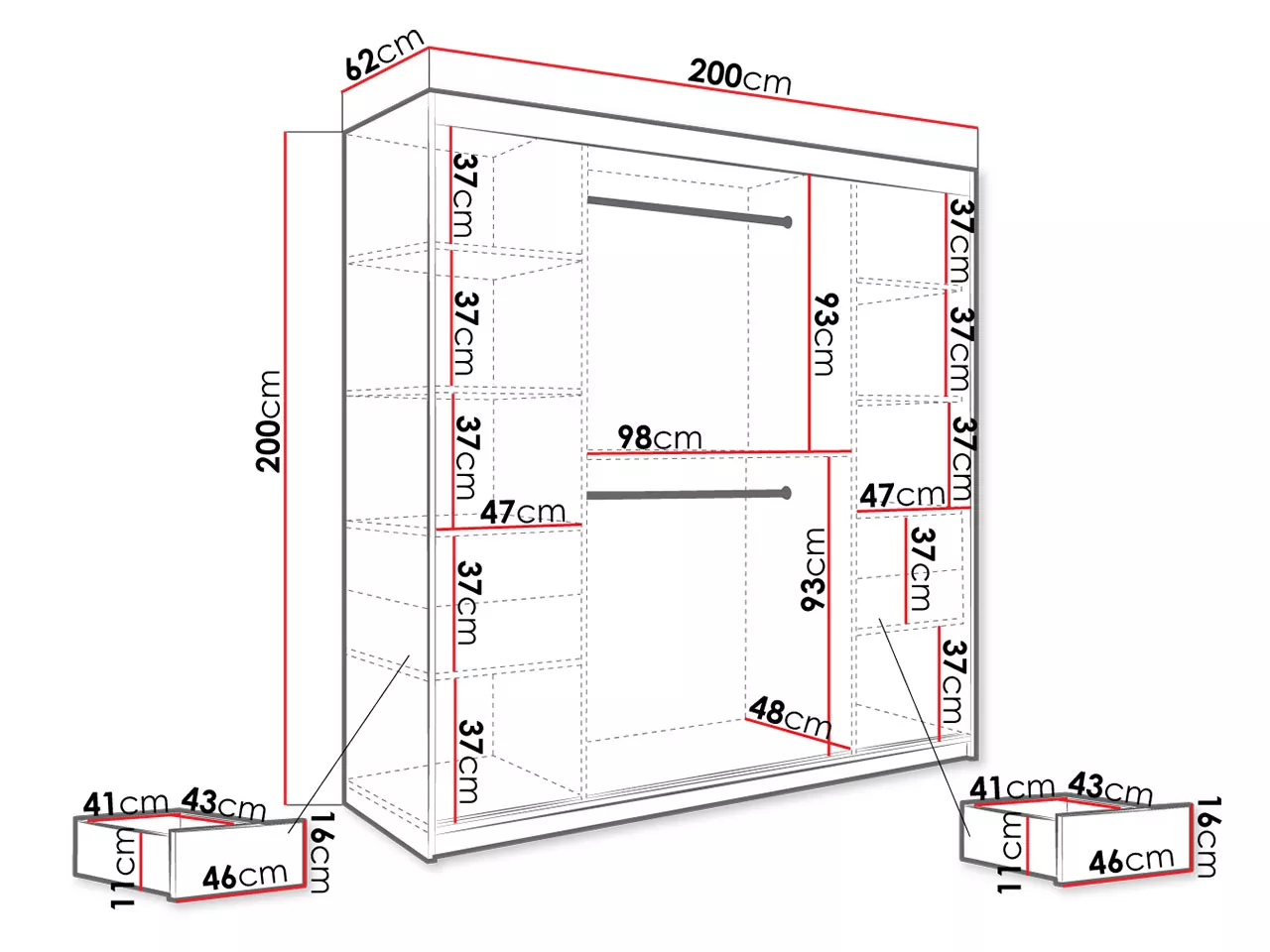 Šatní skříň se zrcadlem CARSON spojuje praktičnost s moderním designem. Zrcadlové dveře opticky zvětšují prostor. Hluboké poličky, šuplíky a 2 šatní tyče umožňují snadné uspořádání šatníku a poskytují dostatek místa pro všechny vaše věci. Jedinečný design skříně podtrhují mramorový efekt a zlaté úchyty.
