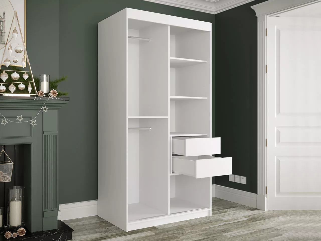 Obohaťte svou ložnici s moderní šatní skříní CARSON, která nabízí praktické úložné prostory a zrcadlové dveře. Díky chytrému uspořádání si snadno zorganizujete oblečení i doplňky. Zrcadlo navíc opticky zvětšuje místnost a přidává na světelnosti.