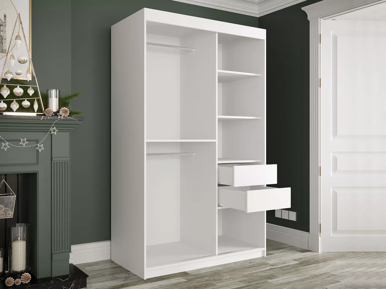 Obohaťte svou ložnici s moderní šatní skříní CARSON, která nabízí praktické úložné prostory a zrcadlové dveře. Díky chytrému uspořádání si snadno zorganizujete oblečení i doplňky. Zrcadlo navíc opticky zvětšuje místnost a přidává na světelnosti.