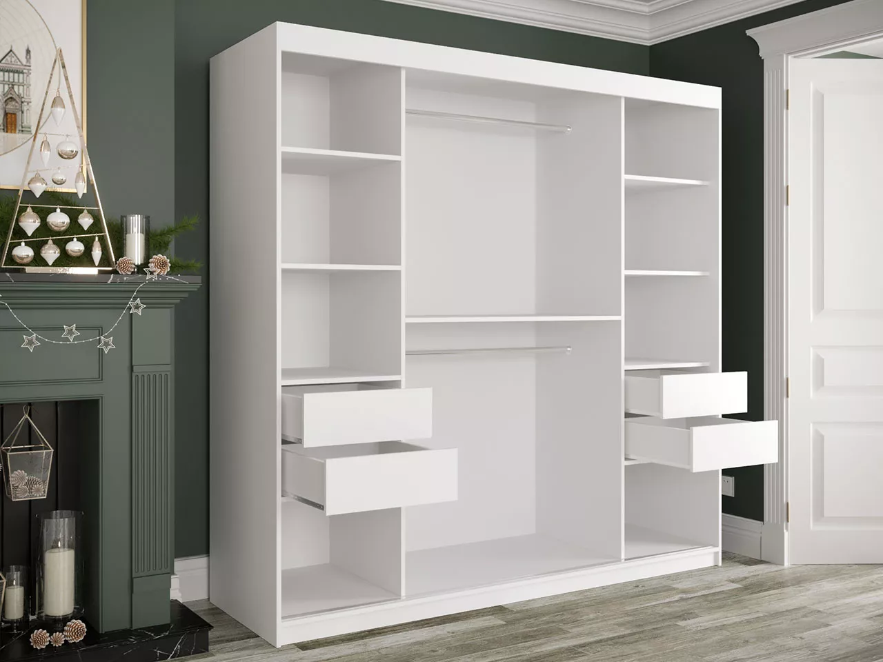 Obohaťte svou ložnici s moderní šatní skříní CARSON, která nabízí praktické úložné prostory a zrcadlové dveře. Díky chytrému uspořádání si snadno zorganizujete oblečení i doplňky. Zrcadlo navíc opticky zvětšuje místnost a přidává na světelnosti.