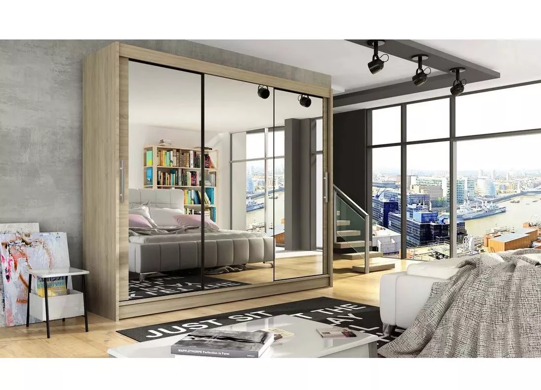 Vysoká šatní skříň se zrcadlem 250 cm HORTENSIA 3 - dub sonoma