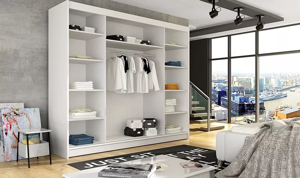 HORTENSIA 3 je mimořádně prostorná šatní skříň s posuvnými dveřmi v moderním stylu. Nepochybnou výhodou je velké zrcadlo, které opticky zvětšuje prostor a vnáší do místnosti více světla. Interiér šatní skříně vás okouzlí svým přívětivým a funkčním uspořádáním.