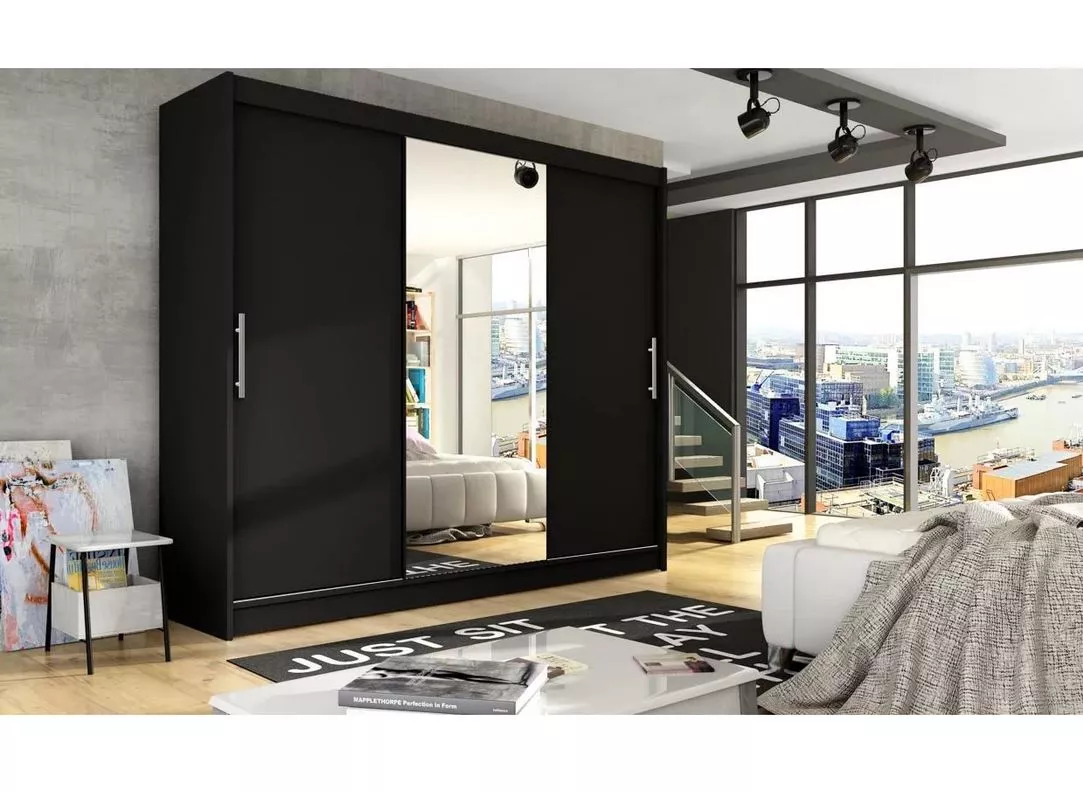 Velká šatní skříň se zrcadlem 250 cm HORTENSIA 1 - černá