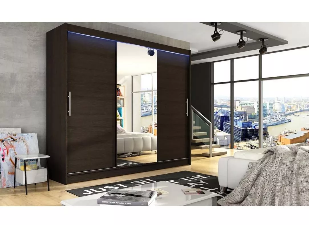 Velká šatní skříň se zrcadlem 250 cm HORTENSIA 1 - hnědá + RGB osvětlení ZDARMA