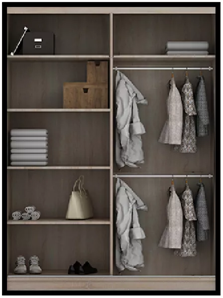 Šatní skříň SERVELA skvěle doplní váš interiér. Praktické posuvné dveře oceníte v boji s nedostatkem místa. Uvnitř skříně jsou police a šatní tyče.