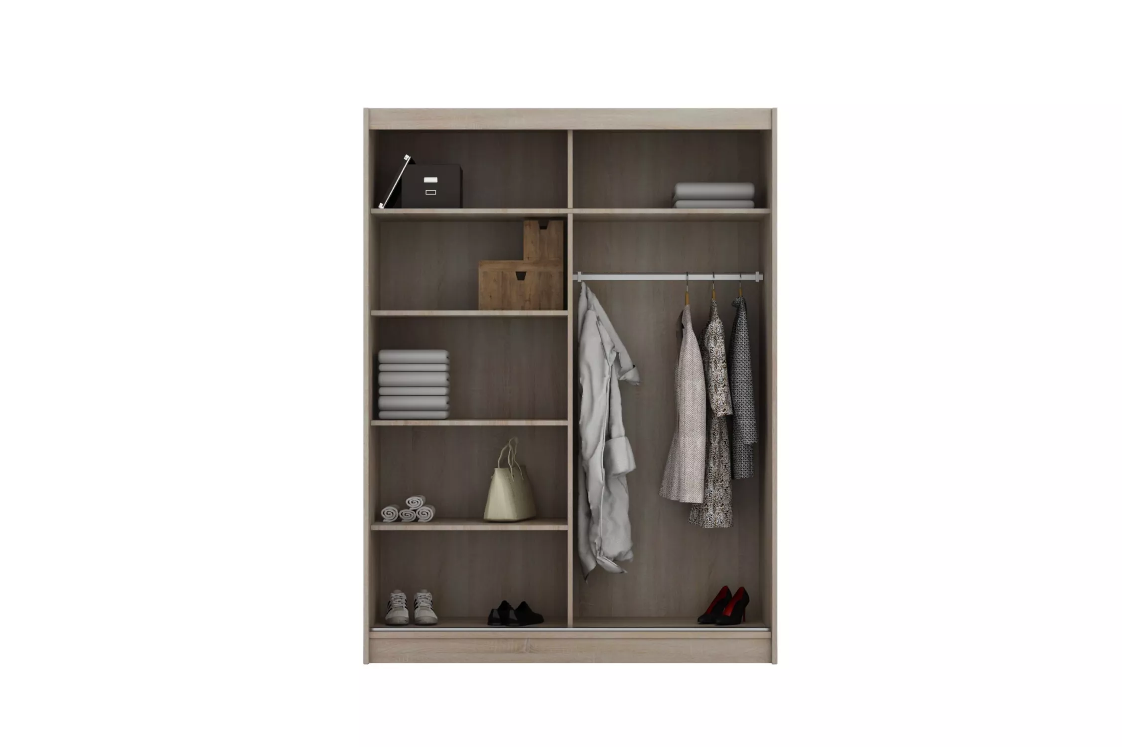 Šatní skříň se zrcadlem POLA představuje spojení elegance a funkcionality. Uvnitř najdete praktické police pro uspořádání oblečení a šatní tyč pro snadné pověšení vašich šatů.