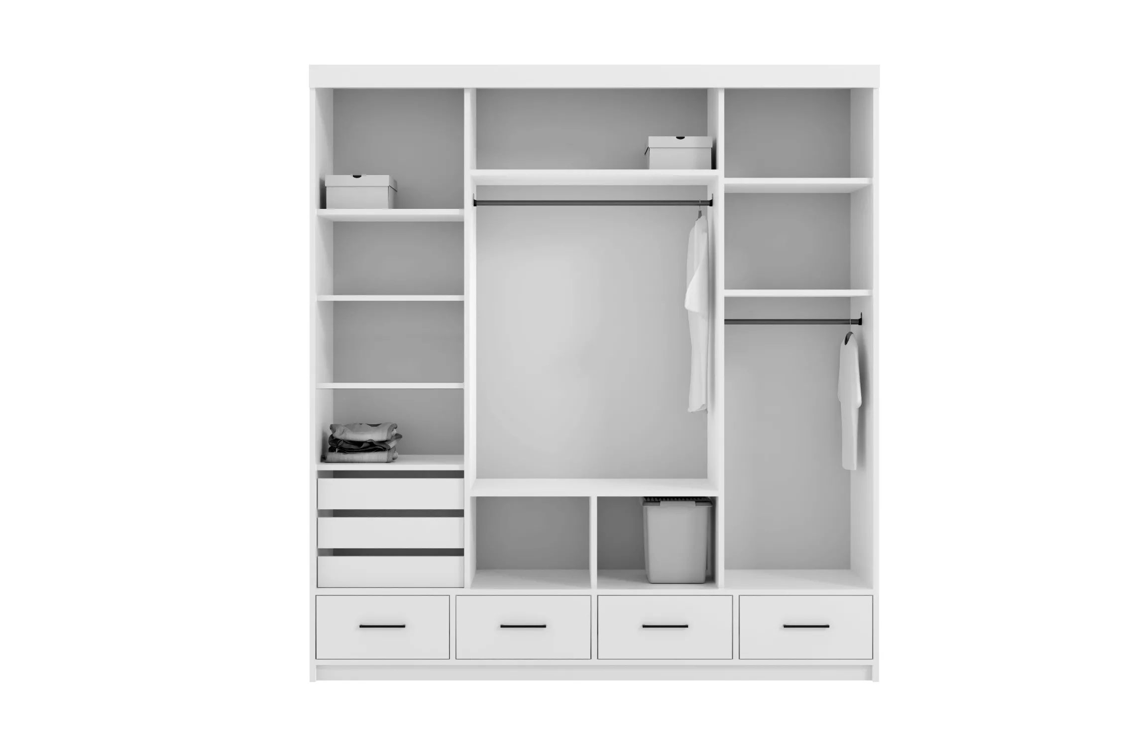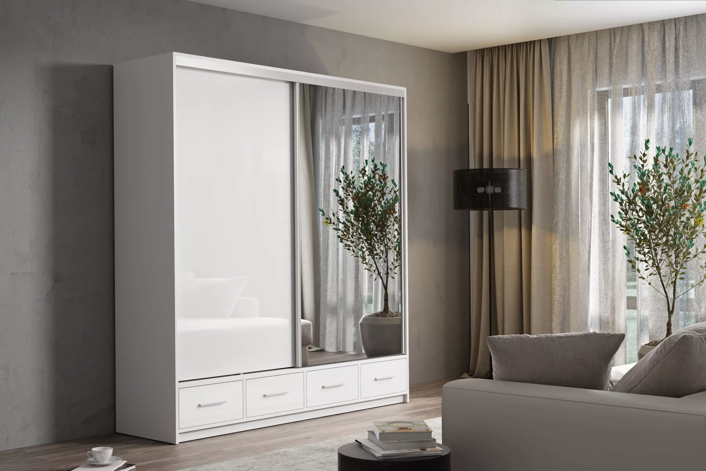 Moderní šatní skříň s LED osvětlením LIZY představuje spojení elegance a funkcionality. Uvnitř najdete prostorné police pro uspořádání oblečení a šatní tyče pro snadné pověšení vašich šatů. LED osvětlení poskytuje dostatek světla, takže své oblečení najdete snadno i v ranních nebo večerních hodinách.