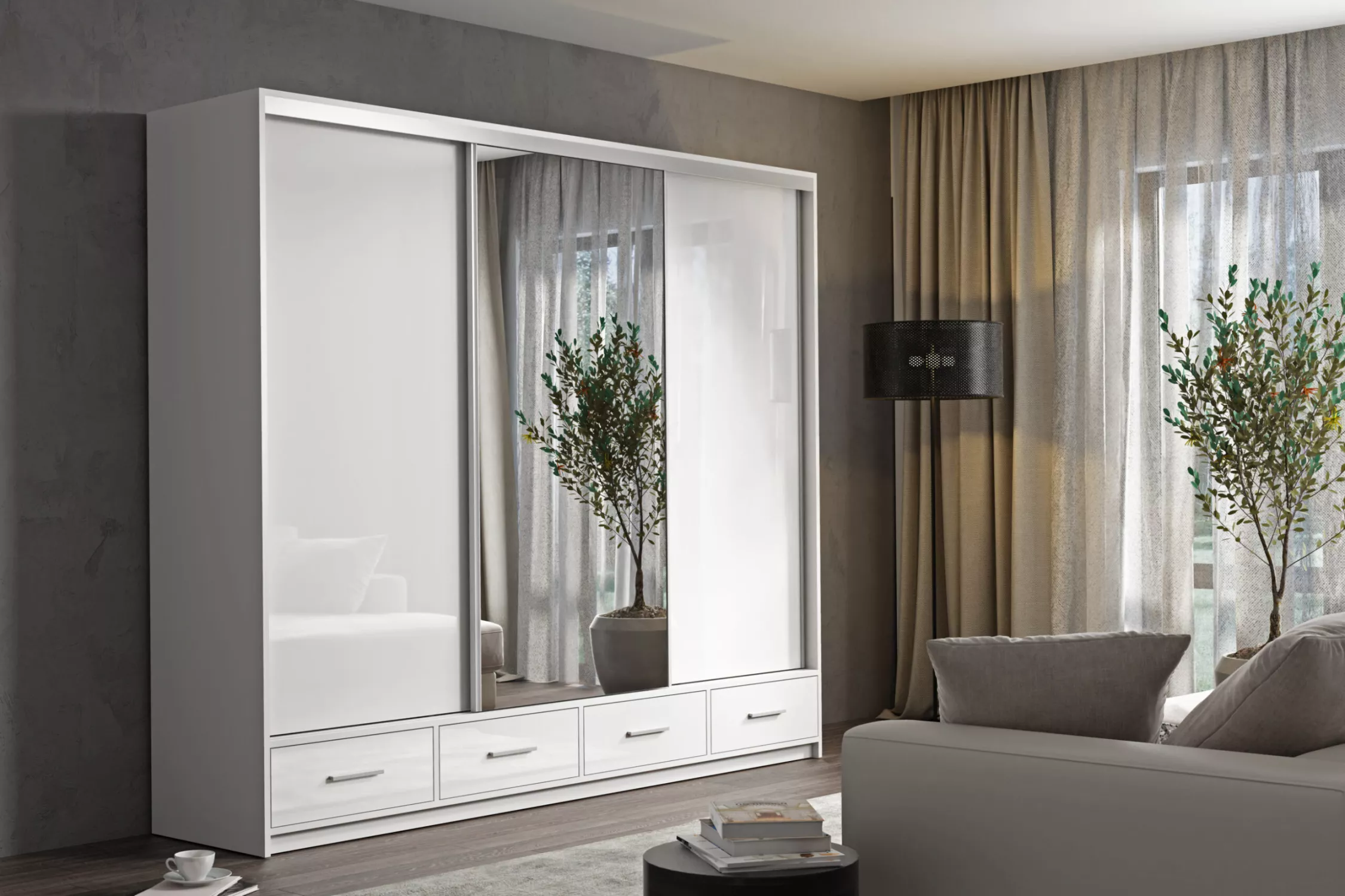 Moderní šatní skříň s LED osvětlením LIZY představuje spojení elegance a funkcionality. Uvnitř najdete prostorné police pro uspořádání oblečení a šatní tyče pro snadné pověšení vašich šatů. LED osvětlení poskytuje dostatek světla, takže své oblečení najdete snadno i v ranních nebo večerních hodinách.