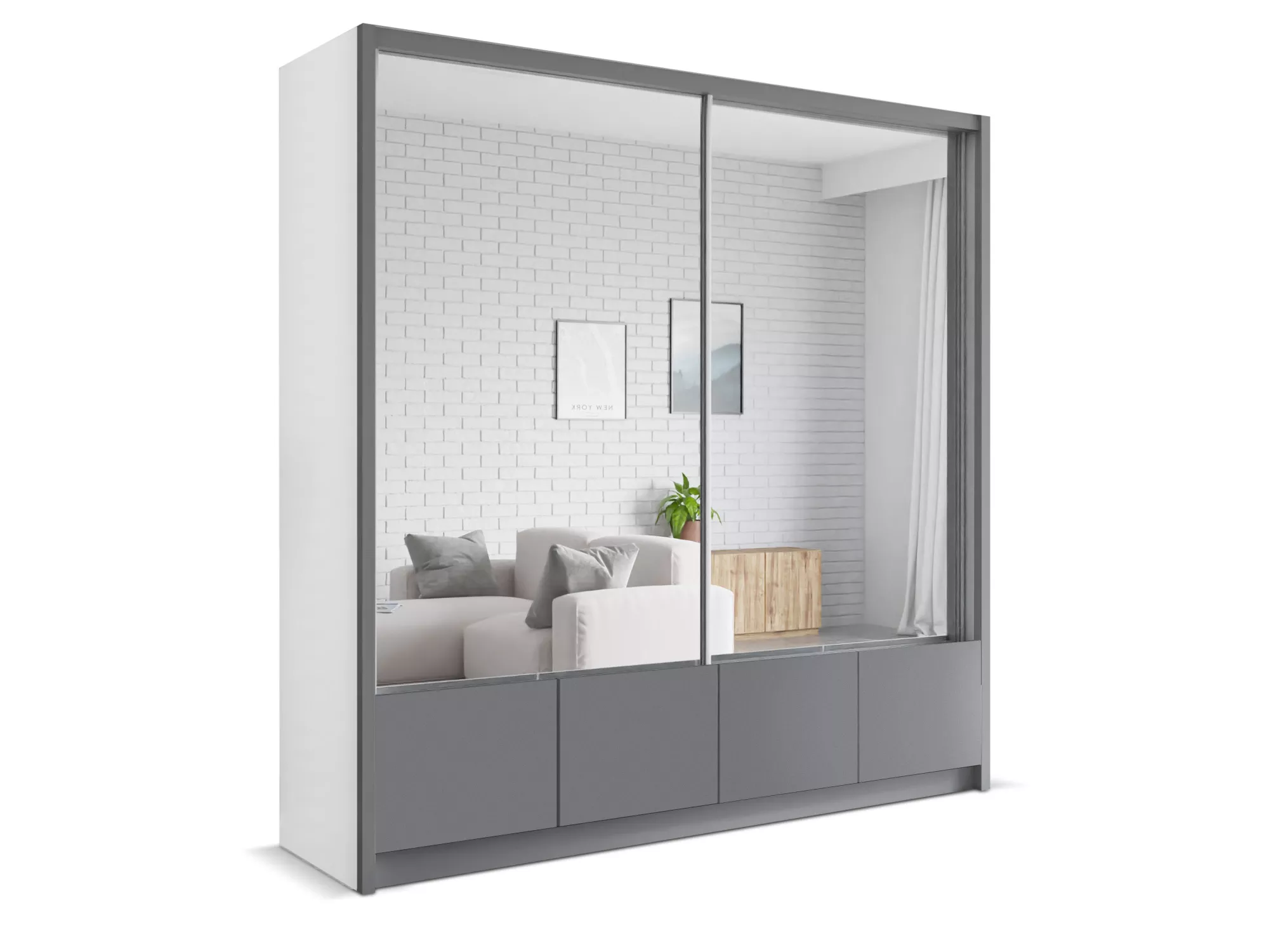 Prostorná šatní skříň se zrcadlem 200/217 LORELL - bílá / šedá