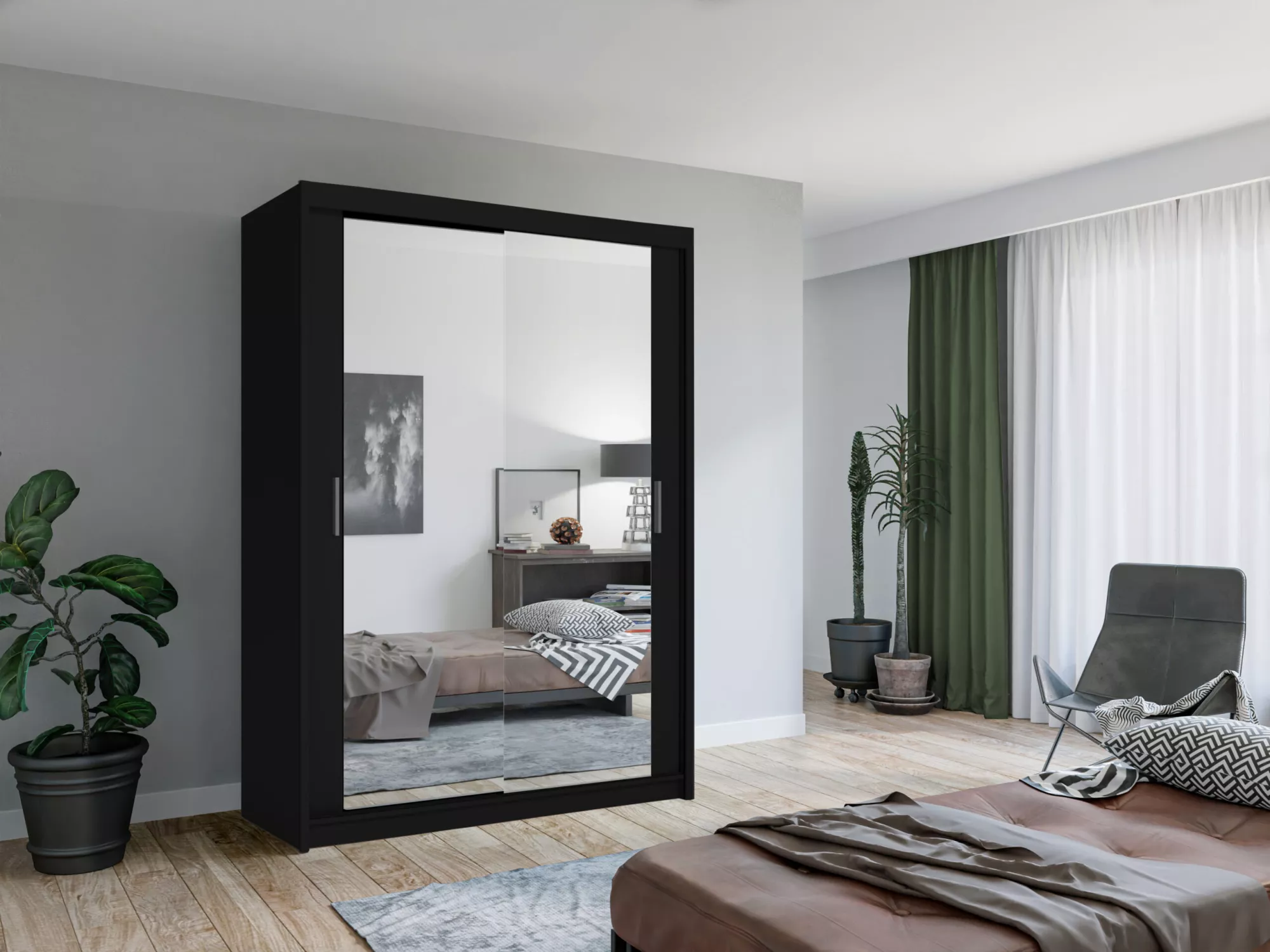 Zrcadlová šatní skříň 150/62 KAILAN - černá