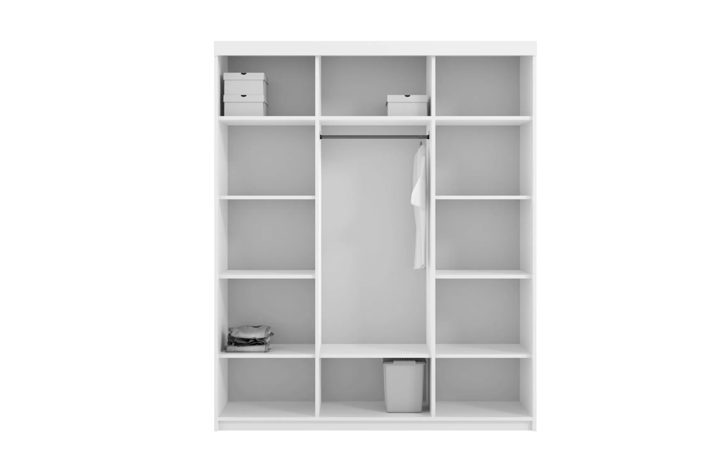 Moderní šatní skříň AUREN představuje spojení elegance a funkcionality. Nabízí dostatek úložného prostoru v podobě policového systému a šatní tyče.