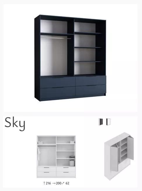 Kombinovaná šatní skříň 200/60 RAKEL - modrá