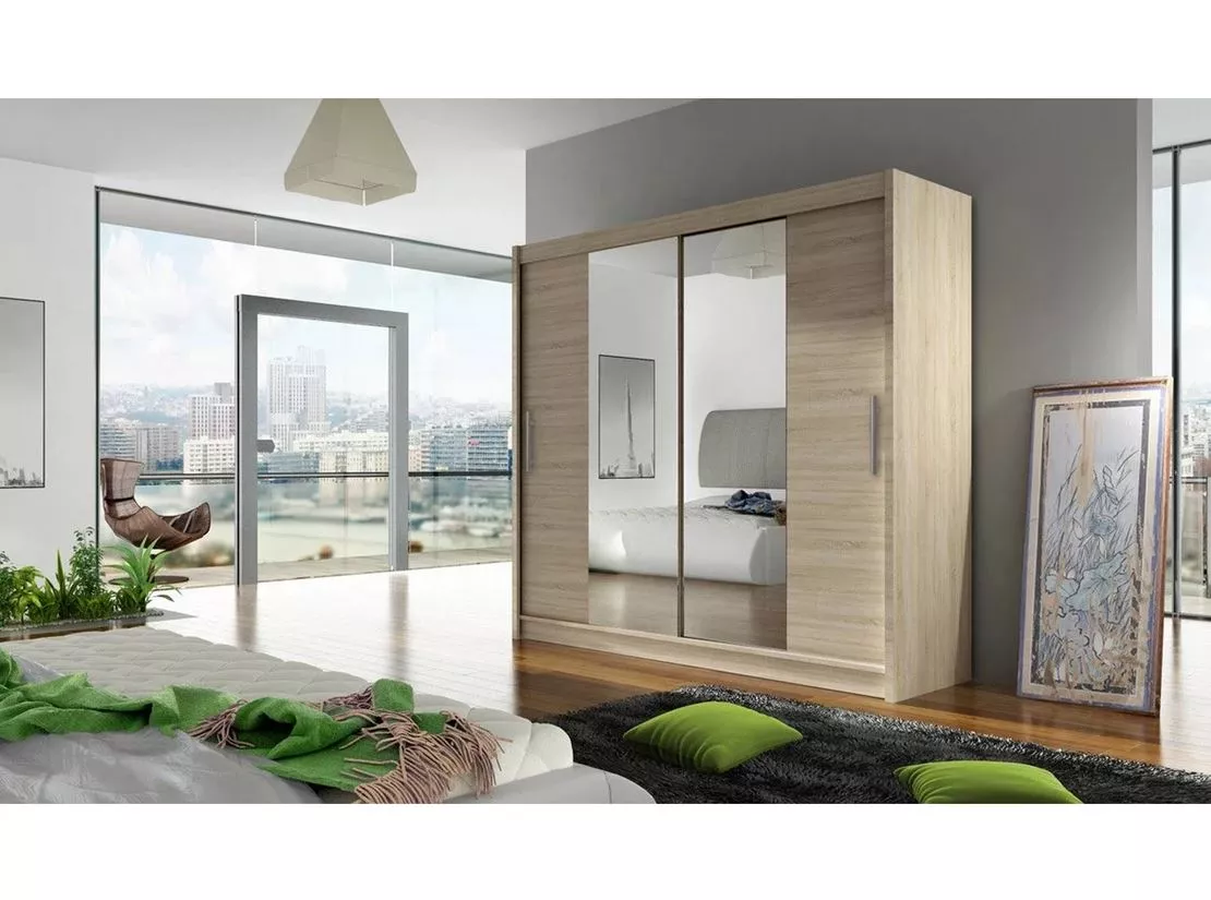 Vysoká šatní skříň se zrcadlem 180 cm FLORENCIO 2 - dub sonoma