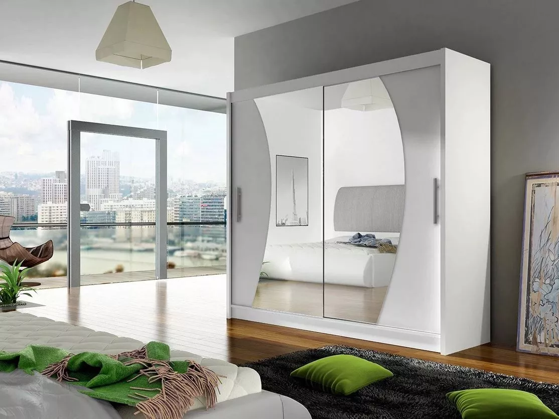 Zrcadlová velká šatní skříň 180 cm FLORENCIO 9 - bílá