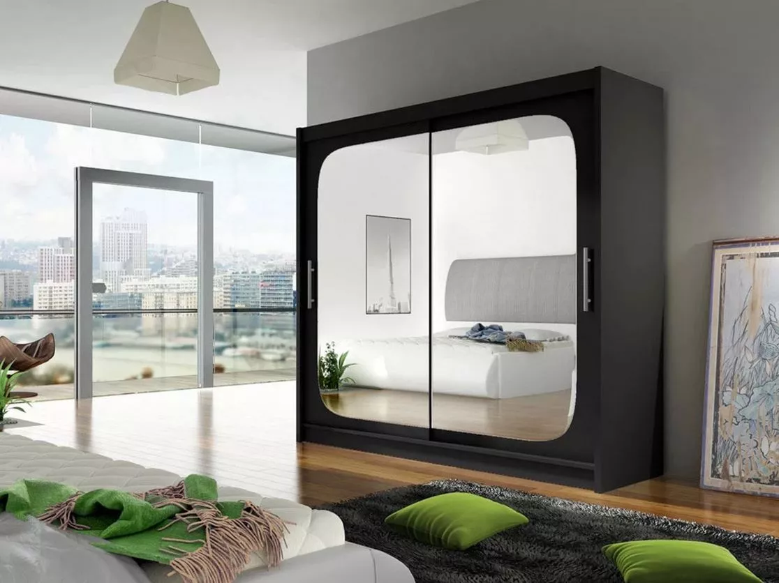 Velká šatní skříň 180 cm se zrcadlem FLORENCIO 8 - černá