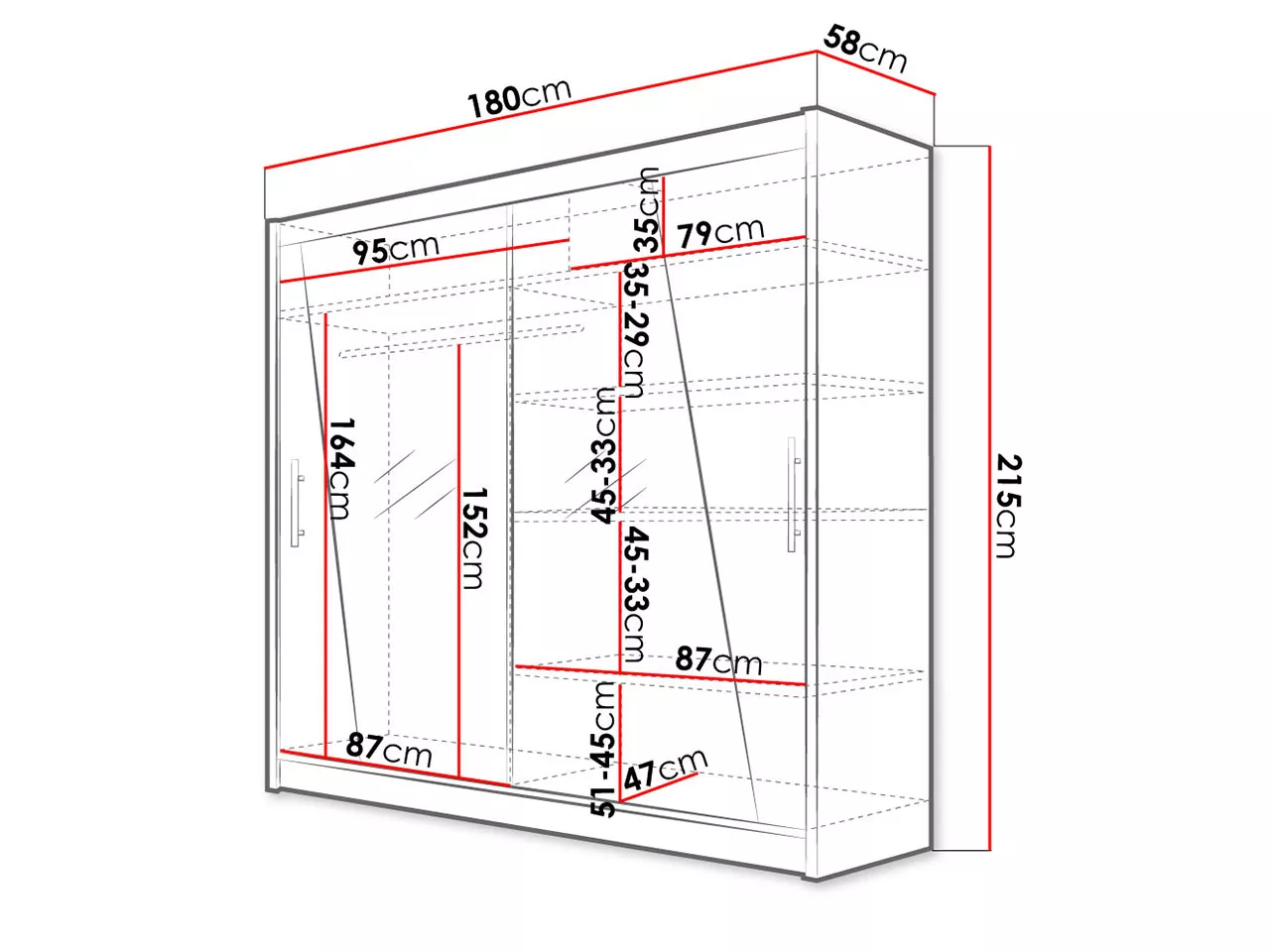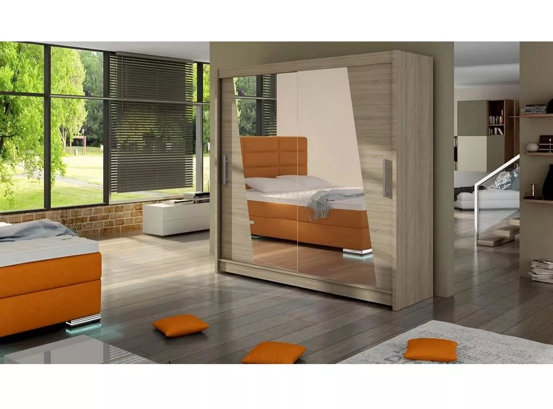 Obohaťte svou ložnici se šatní skříní FLORENCIO, která nabízí praktické úložné prostory. Díky chytrému uspořádání si snadno zorganizujete oblečení i doplňky. Zrcadlo navíc opticky zvětšuje místnost.