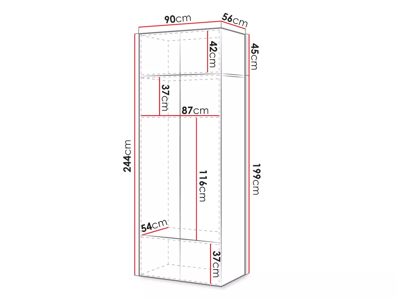 Úzká šatní skříň CRATO dodá stylový vzhled obývacímu pokoji, předsíni i ložnici. Elegantní vyfrézovaná dvířka podtrhují moderní design skříně. Celkový vzhled doplňuje praktický bezúchytkový systém otevírání PUSH TO OPEN. Vnitřní police a šarní tyč nabízejí dostatek místa pro přehledné uložení předmětů.