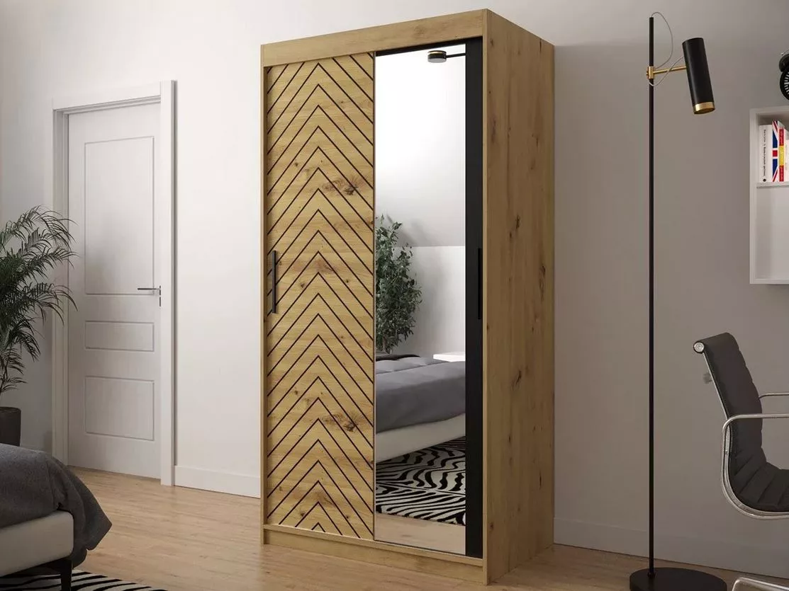 Úzká zrcadlová šatní skříň 100 cm ORIOT - dub artisan / černá