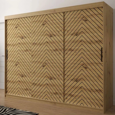Velká šatní skříň 250 cm s posuvnými dveřmi ORIOT - dub artisan / černá