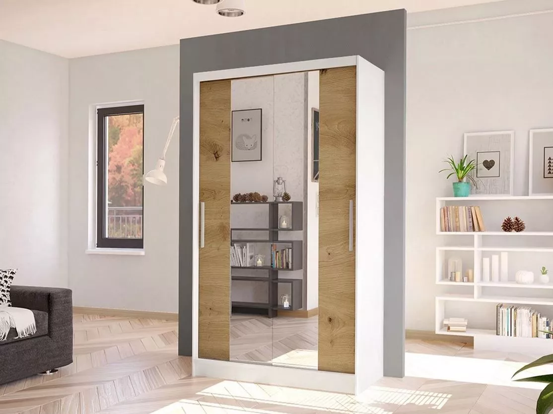 Úzká šatní skříň 100 cm se zrcadlem ARAPO 2 - dub artisan / bílá