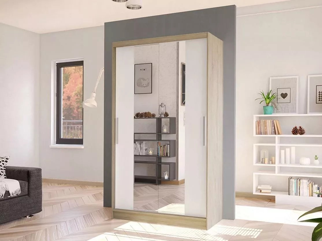 Úzká šatní skříň 100 cm se zrcadlem ARAPO 2 - dub sonoma / bílá