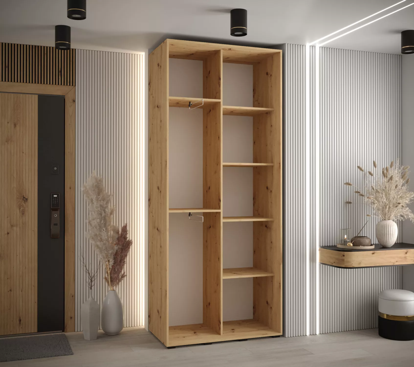 Součástí skříně jsou police i 2 výsuvné šatní tyče. Šuplíky do skříně najdete v sekci Doporučujeme přikoupit.