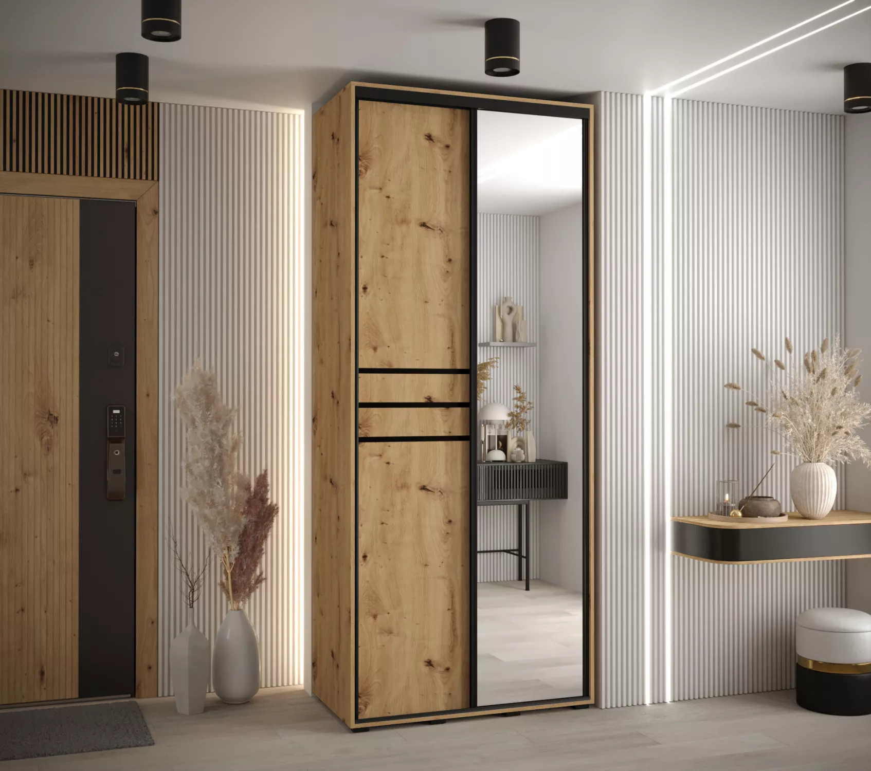VÝPRODEJ - Šatní skříň YVONA 11 - 120/45 cm, dub artisan / černá