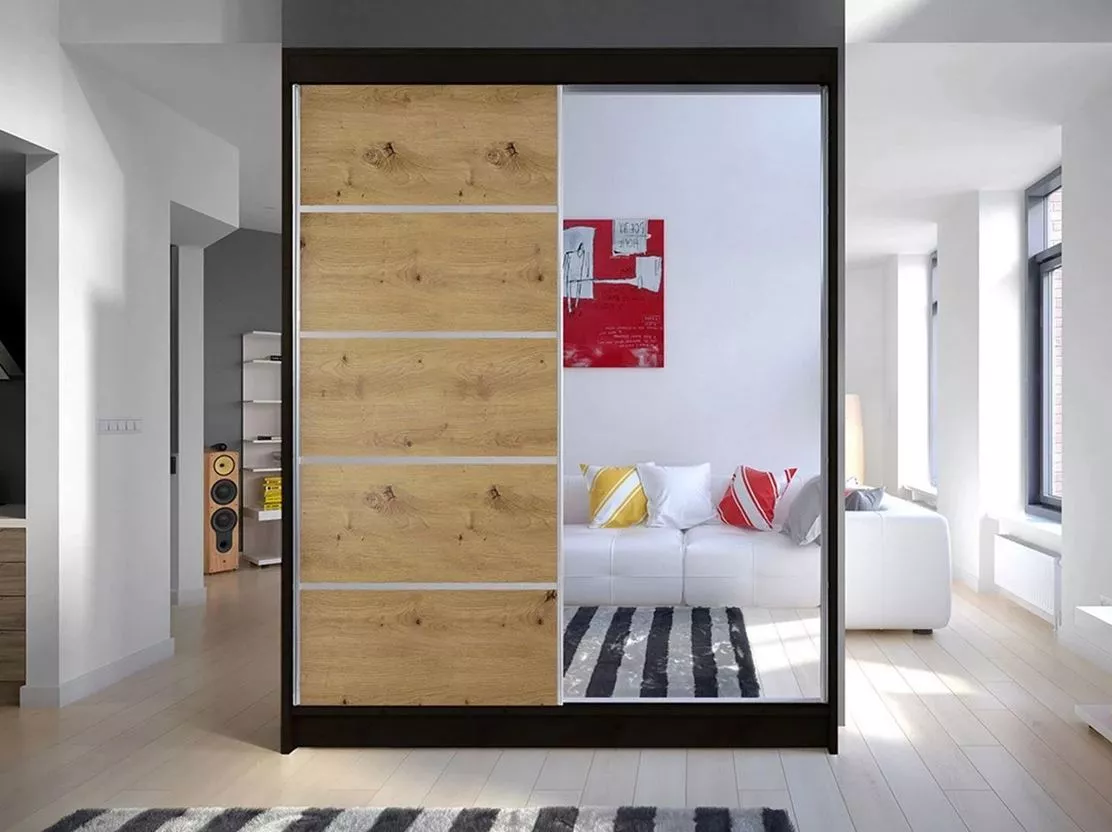 Šatní skříň se zrcadlem 150 cm PIRITU 3 - dub artisan / černá