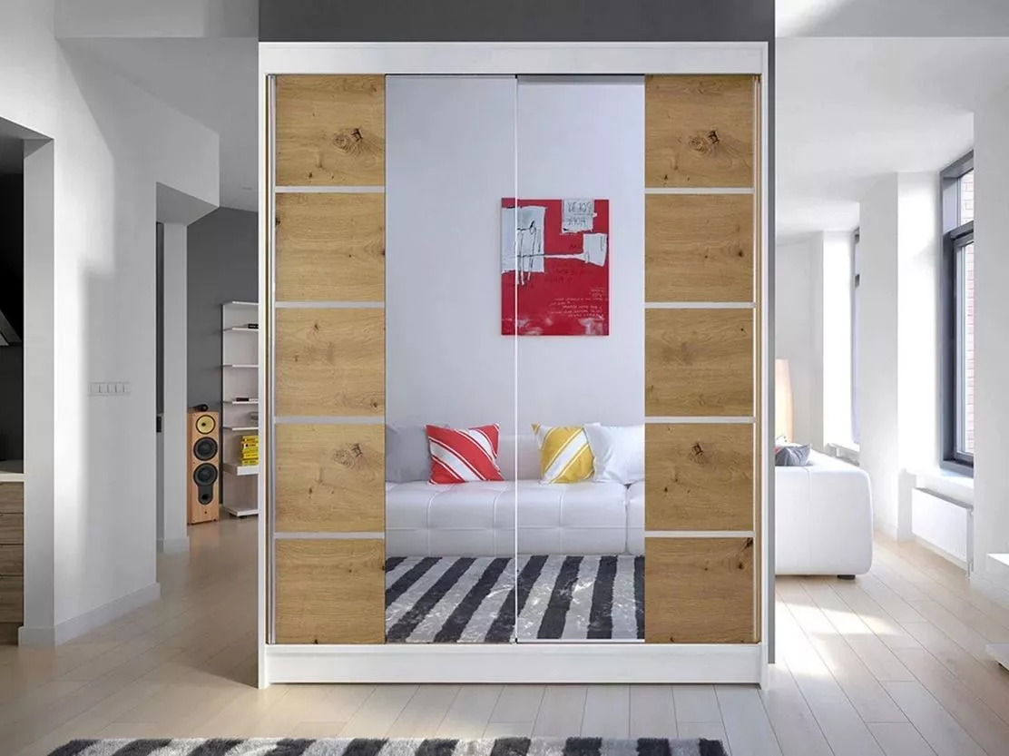 Zrcadlová šatní skříň 150 cm s posuvnými dveřmi PIRITU 5 - dub artisan / bílá