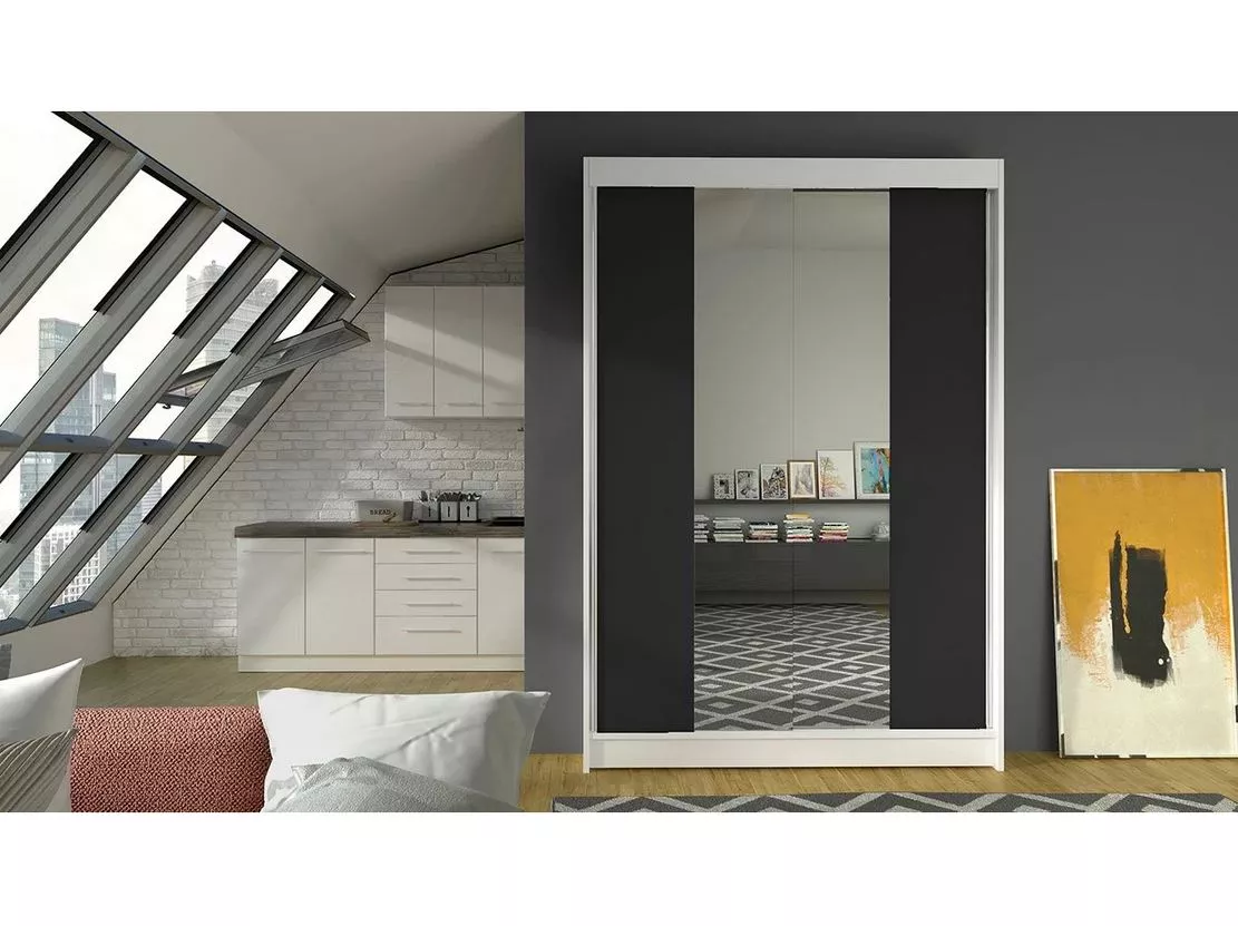Úzká šatní skříň 120 cm se zrcadlem SAMANRE 2 - bílá / černá