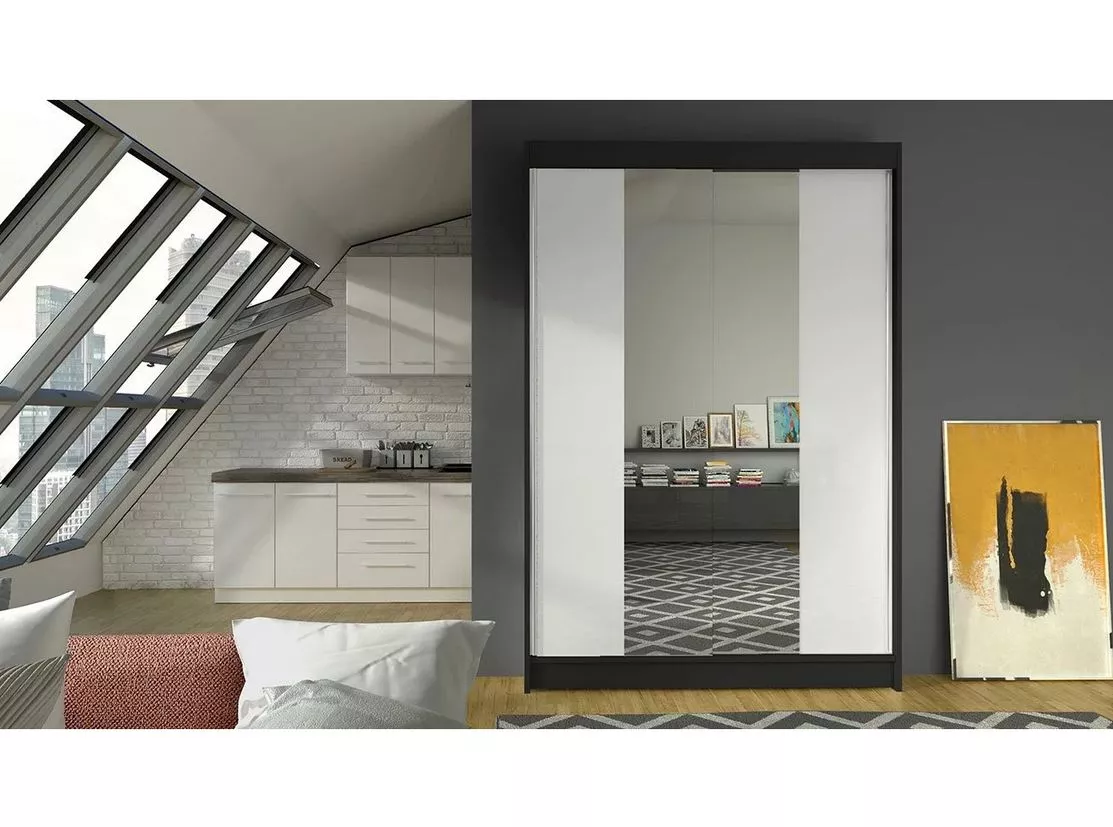 Úzká šatní skříň 120 cm se zrcadlem SAMANRE 2 - černá / bílá
