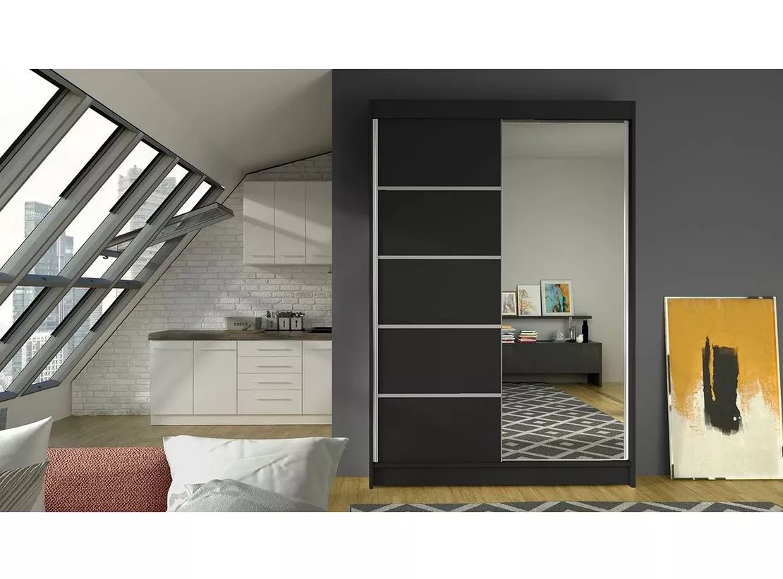Vysoká šatní skříň 120 cm se zrcadlem SAMANRE 3 - černá