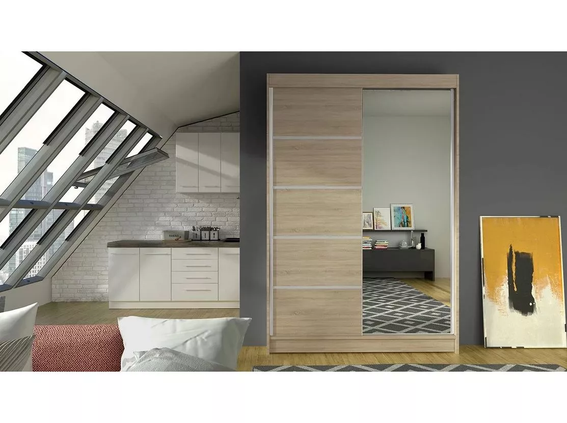 Vysoká šatní skříň 120 cm se zrcadlem SAMANRE 3 - dub sonoma