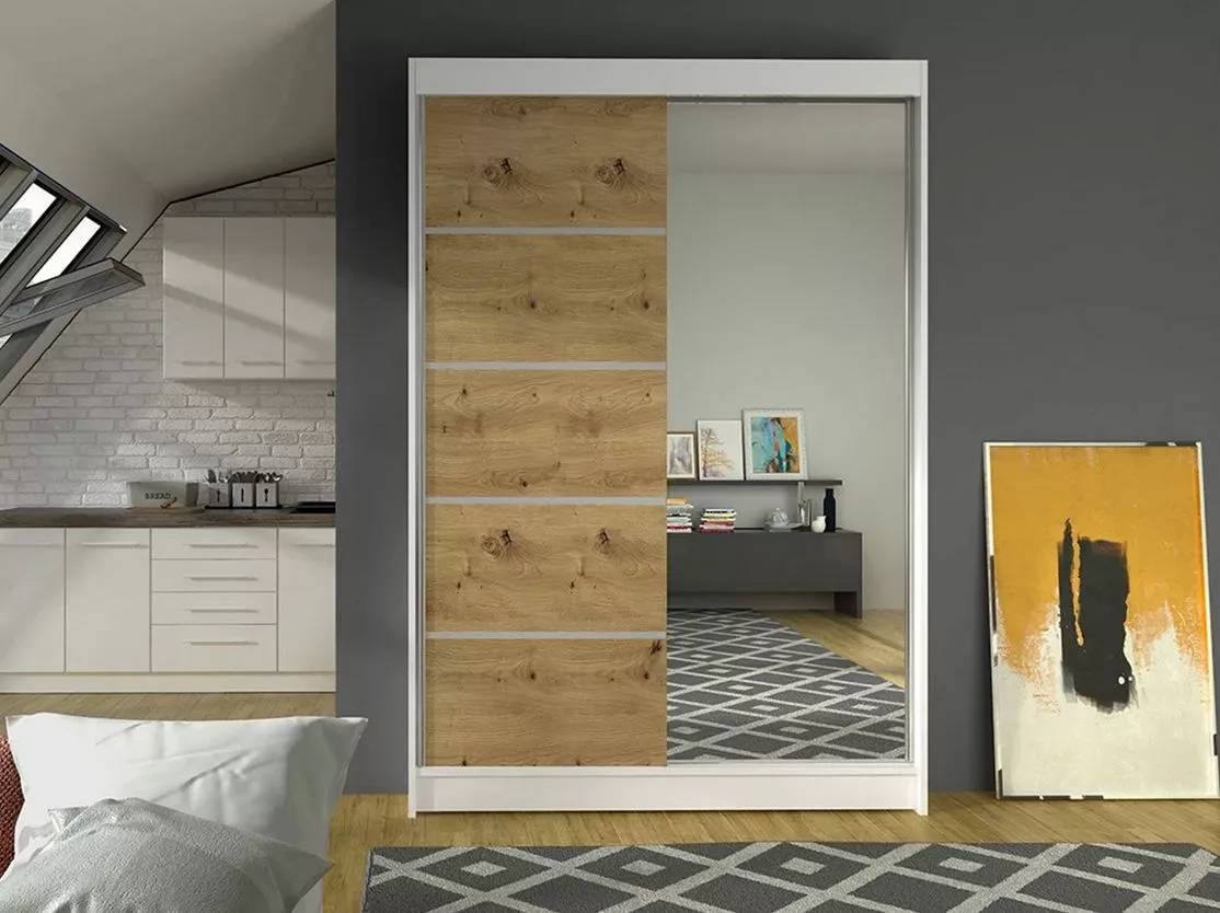Vysoká šatní skříň 120 cm se zrcadlem SAMANRE 3 - dub artisan / bílá