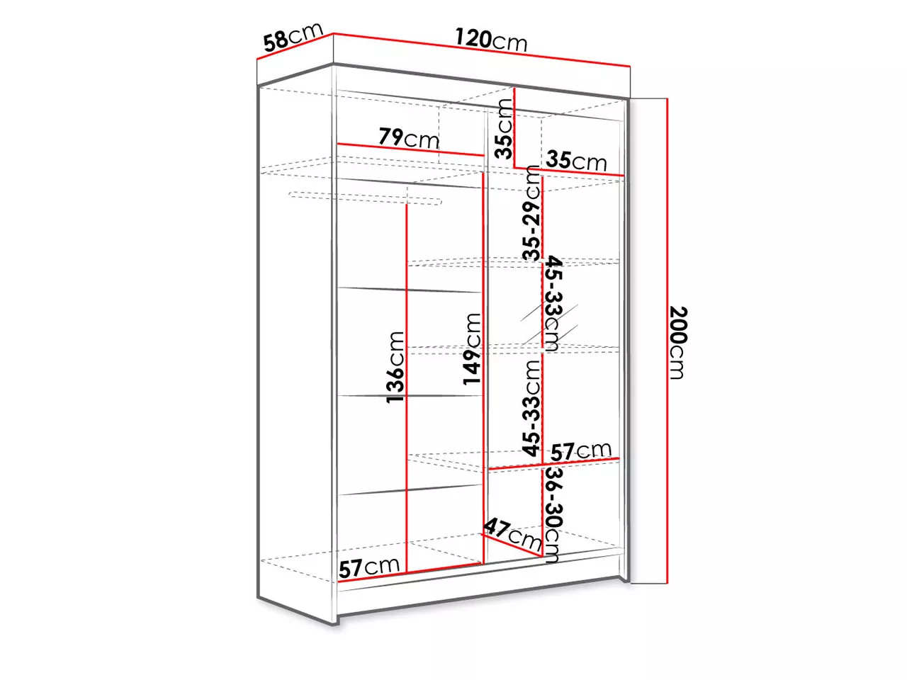 Získejte šatní skříň SAMANRE, která se stane nejen praktickým pomocníkem, ale i moderním kouskem vaší ložnice či předsíně. Posuvné dveře se zrcadlem přinášejí více světla a prostoru, zatímco vnitřní uspořádání s hlubokými policemi a šatní tyčí umožní dokonalou organizaci.