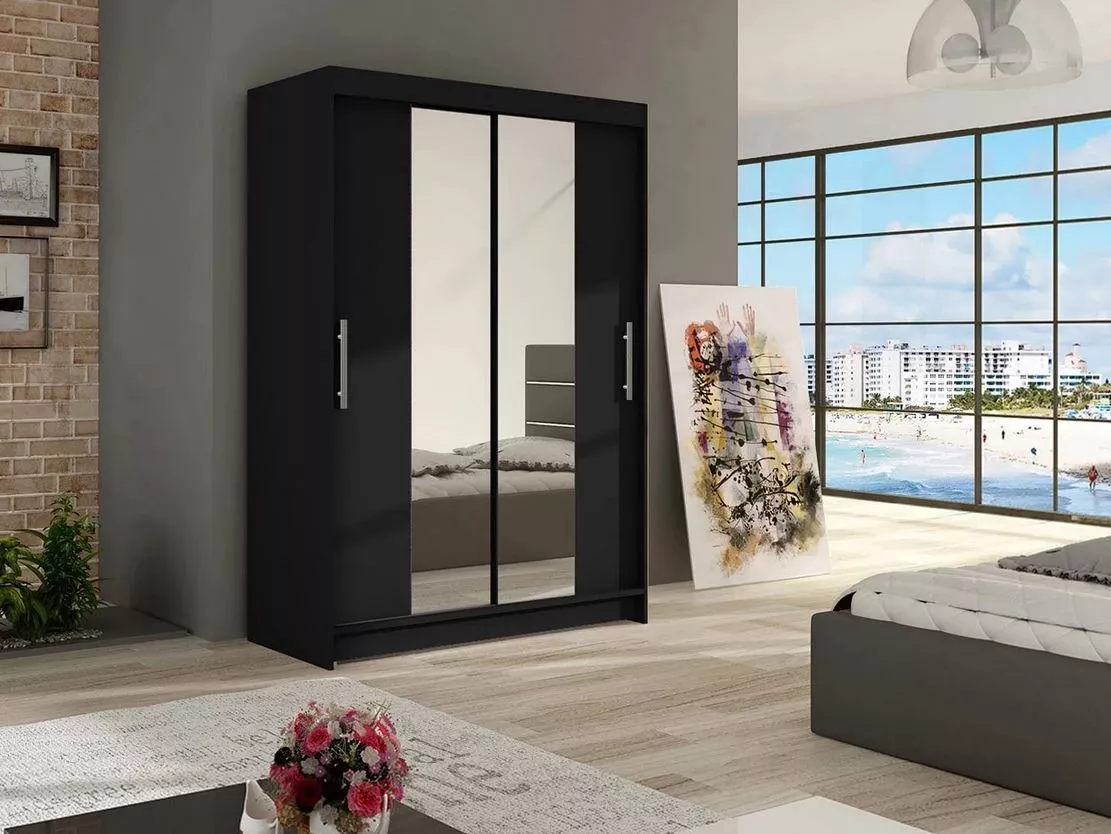 Šatní skříň se zrcadlem 120 cm GASPARA 2 - černá