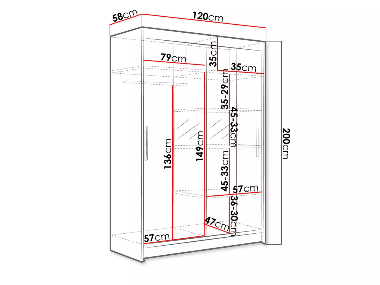 Moderní design, chytré řešení úložného prostoru a nadčasový vzhled – to je šatní skříň GASPARA. Zrcadla dodávají skříni sofistikovaný nádech, a zároveň pomáhají místnost vizuálně zvětšit. Díky praktickému vnitřnímu uspořádání s šatní tyčí a hlubokými policemi budete mít vždy dokonalý přehled o svém oblečení. Skříň se snadno sladí s jakýmkoli interiérem a přinese do něj eleganci i funkčnost.