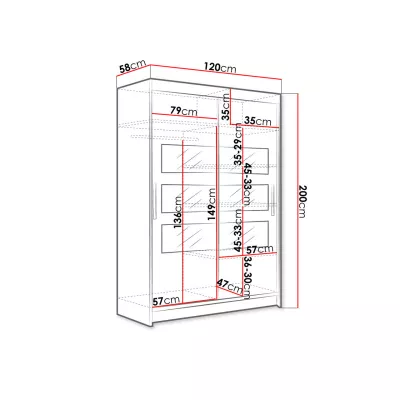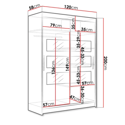 Zrcadlová šatní skříň 120 cm GASPARA 5 - dub lanýž