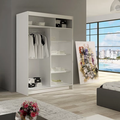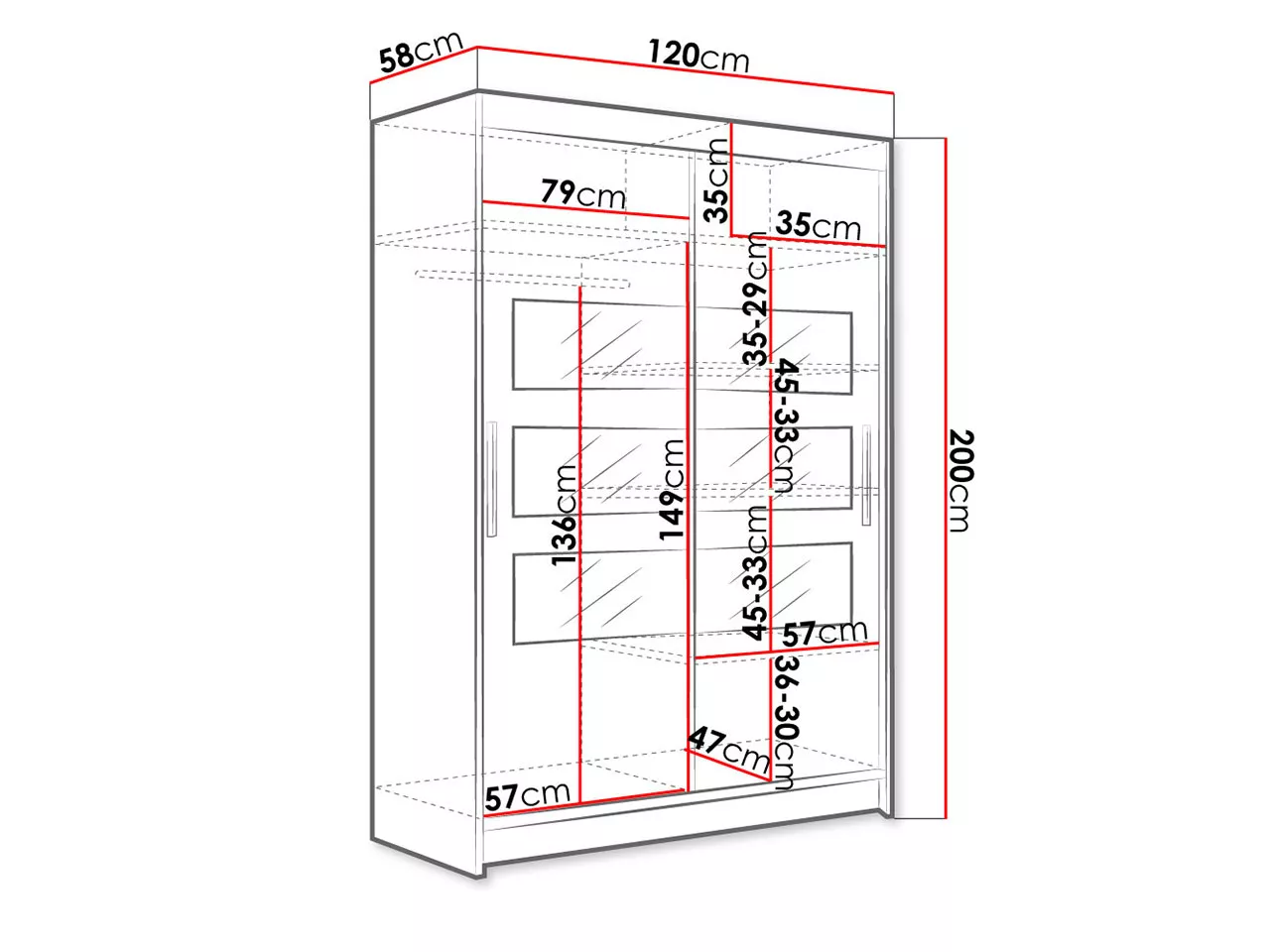 Úzká, stylová a maximálně funkční – šatní skříň GASPARA vás okouzlí svým promyšleným designem. Díky zrcadlům na dveřích interiér získá více světla a optického zvětšení, což oceníte zejména v menších místnostech. Vnitřní prostor je rozdělen na část s šatní tyčí a část s hlubokými policemi. Skříň se hodí do ložnice i předsíně, kde nabídne elegantní úložné řešení.
