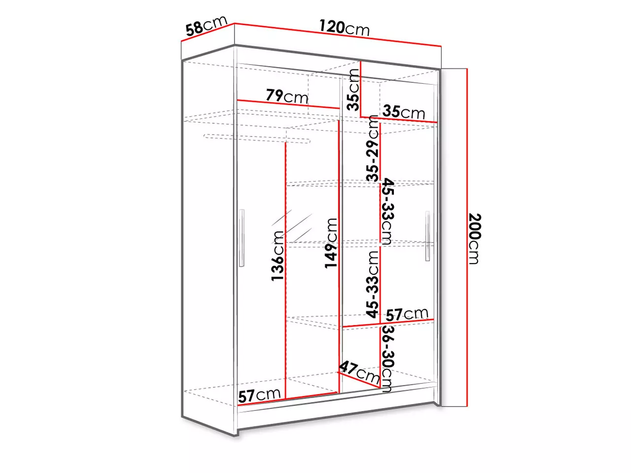 GASPARA je šatní skříň, která spojuje sofistikovaný vzhled s chytrým úložným prostorem. Zrcadla na dveřích nejen opticky zvětší místnost, ale také dodají interiéru moderní nádech. Uvnitř vás čeká praktické rozdělení na šatní tyč pro zavěšení oblečení a hluboké police pro pečlivou organizaci. Skvěle se hodí do ložnic i předsíní, kde pomůže udržet dokonalý pořádek.