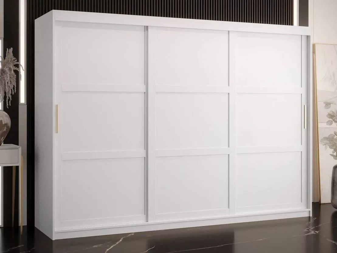 Styl, elegance a maximální funkčnost – šatní skříň MALIA je dokonalým doplňkem moderní ložnice. Se šířkou 250 cm a výškou 200 cm nabízí štědrý úložný prostor, který vám pomůže udržet dokonalý pořádek. 2 šatní tyče a hluboké police po stranách zajistí, že každé oblečení bude mít své místo.
