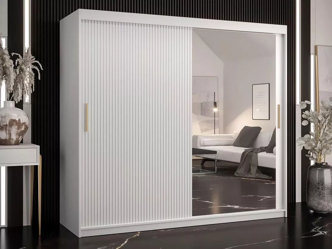 Šatní skříň 200 cm se zrcadlem LONZO 2 - bílá