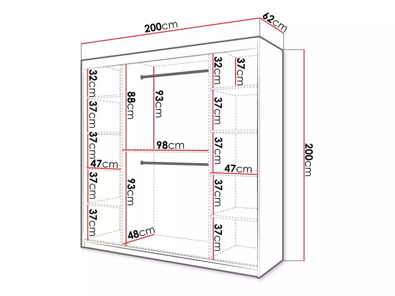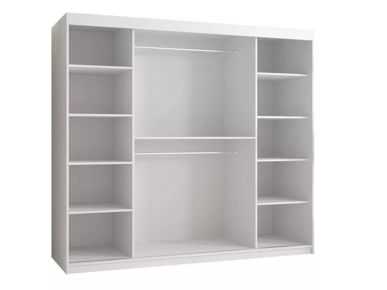 Prostorná, praktická a zároveň elegantní – šatní skříň LONZO splní i ta nejnáročnější očekávání. Posuvné dveře zaručují snadnou manipulaci, aniž by zabíraly místo v pokoji. Velké zrcadlo opticky rozšíří interiér a dodá mu vzdušný vzhled. 2 šatní tyče a hluboké police se postarají o to, aby váš šatník byl dokonale organizovaný.