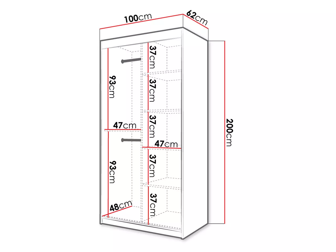 Zrcadlová šatní skříň 100 cm LUNIVE 2 - černá