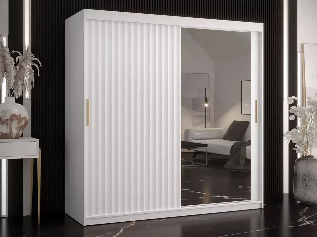 Zrcadlová šatní skříň 180 cm LUNIVE 2 - bílá