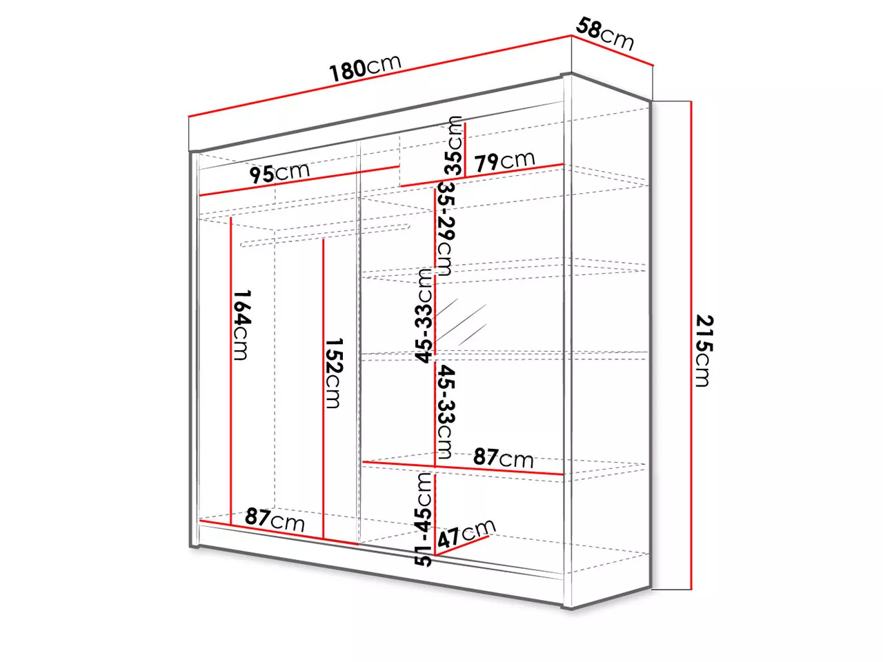 Šatní skříň VILMA je ideální volbou pro každého, kdo hledá stylové a praktické řešení. Posuvné dveře se zrcadlem opticky zvětší místnost, zatímco hluboké police a šatní tyč zajistí dokonalý pořádek. Výška 215 cm nabízí maximální využití prostoru, a díky stabilní konstrukci a PVC hranami vám skříň bude sloužit dlouhá léta. Elegantní minimalistický design skvěle zapadne do moderních i skandinávských interiérů.